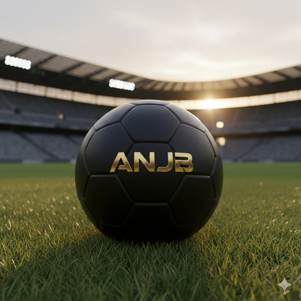 The center of the ball features the ANJB logo rendered in a bold, metallic gold typeface with a premium embossed texture.